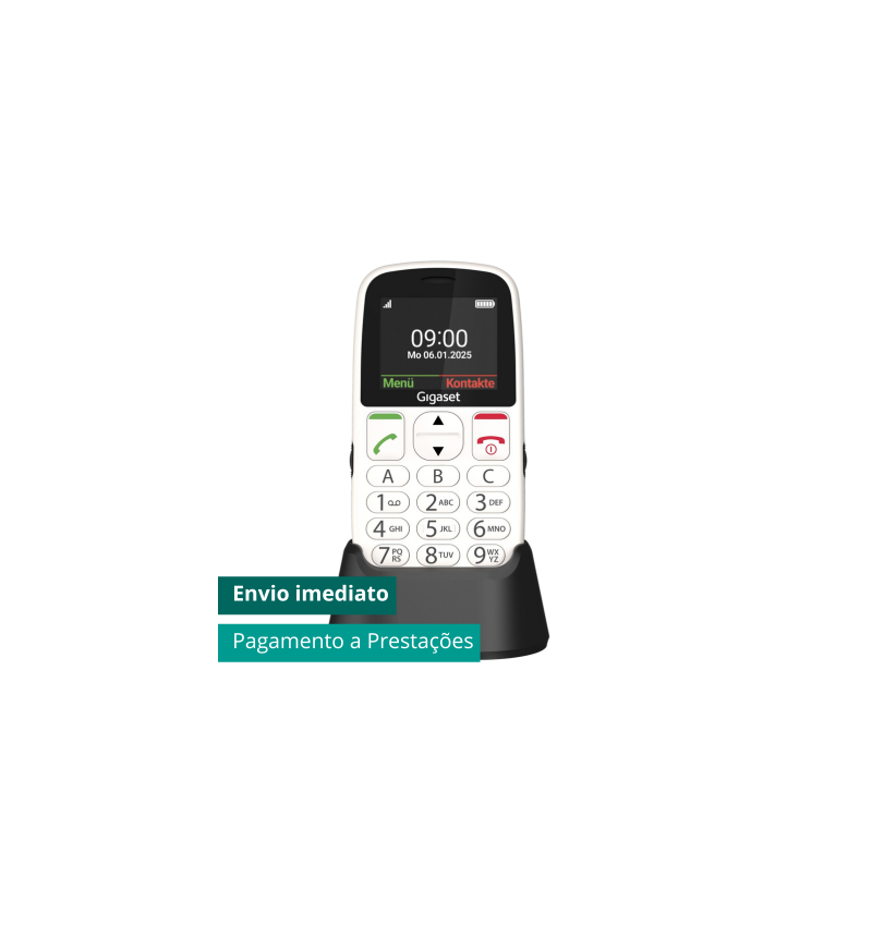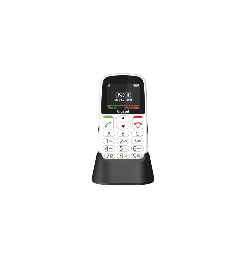 Gigaset GL395 é um telemóvel sénior com teclas grandes e base de carregamento.