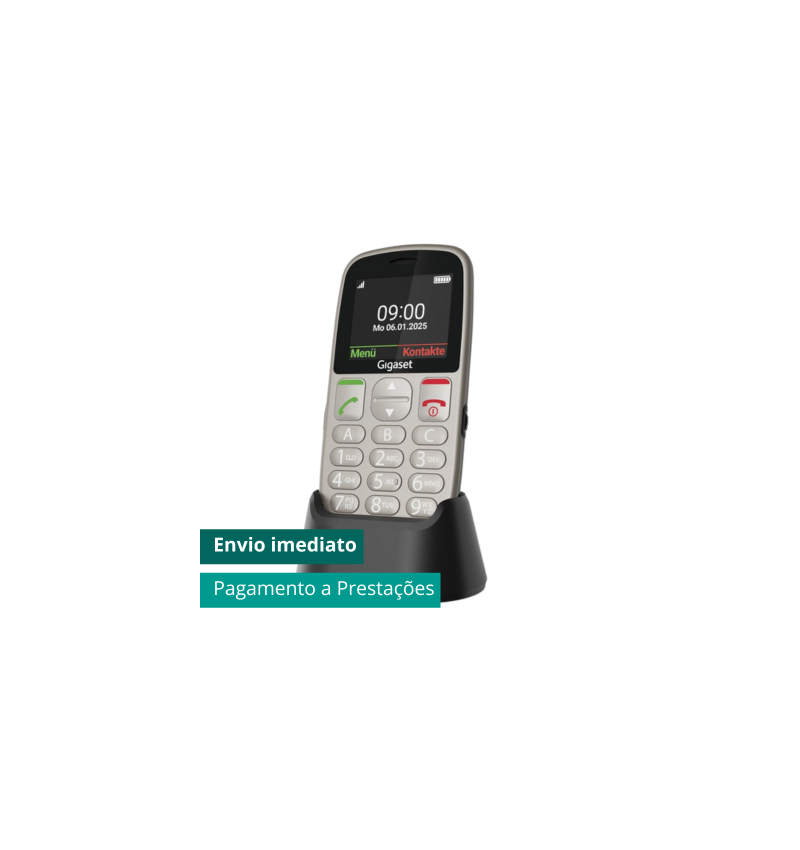 Gigaset GL395 é um telemóvel sénior com teclas grandes e base de carregamento.